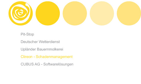 Startseite Logoentwicklung Geschäftsausstattung CUBUS AG - Softwarelösungen Clireon - Schadenmanagment Upländer Bauernmolkerei Deutscher Wetterdienst Pit-Stop Broschüren Flyer Broschüren Anzeigen Flyer Anzeigen Flyer Anzeigen Anzeigen Corporate-Design Corporate Design Promotion Promotion Webdesign Kontakt Webdesign Kontakt Kontakt